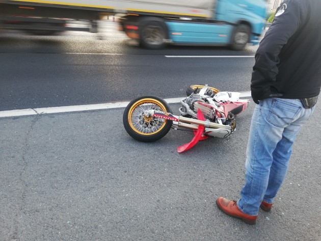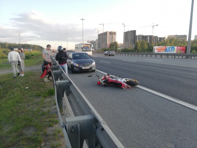 Дтп с мото на КАД на 92-м км внешнего кольца. Мотоциклист жив, цел, возможно сломал ключицу.