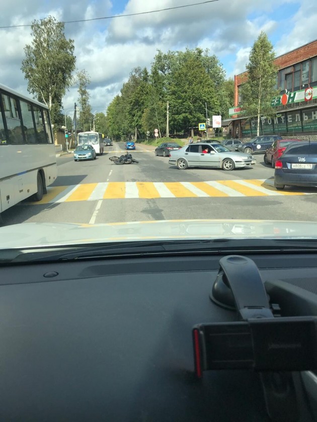 Примерно в 16:48. Мотоцикл и еще участники. Дтп с мото на перекрестке Колтушского ш. и ул.Быкова.