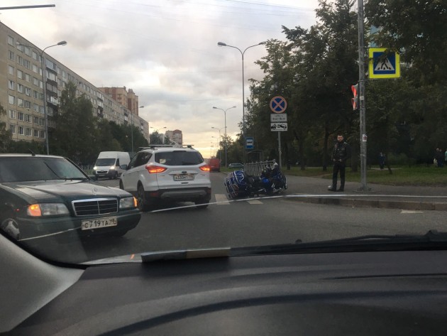 Примерно в 18:02. Мотоцикл и еще участники. Дтп с мото на перекрестке Искровского пр.и ул. Шотмана.