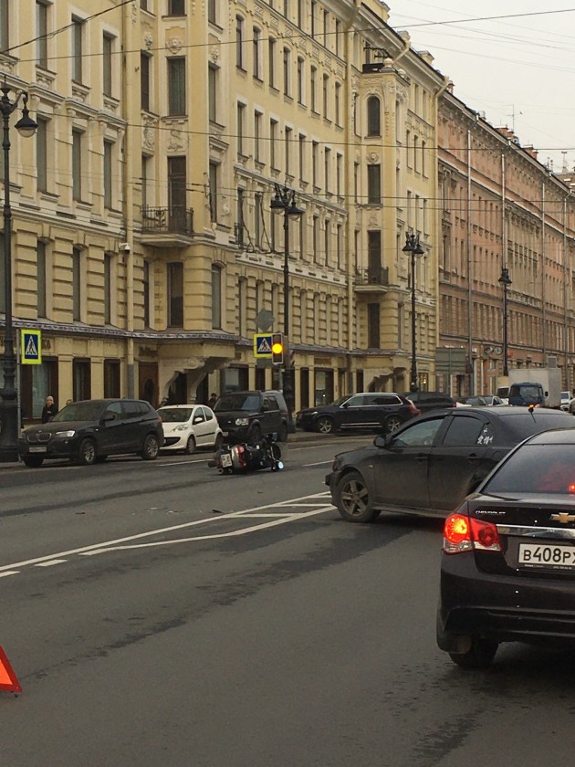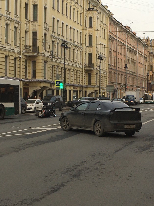Дтп с мото примерно в 14:50 на Суворовском пр.49. Водитель Лансера (гость из южно-азиатской республики) решил развернуться через двойную сплошную.