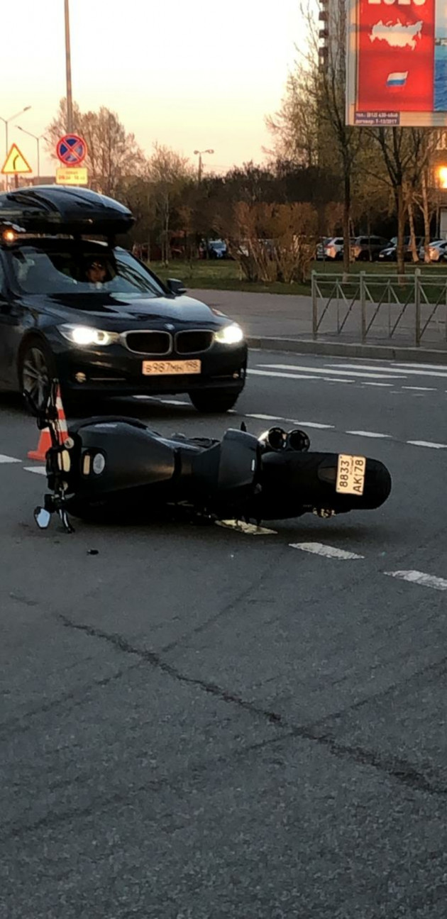 Дтп с мото на перекрестке Морской набережной и Адмиральского проезда. Мотоциклиста увезли в Костюшко, предположительно что-то с ногой.