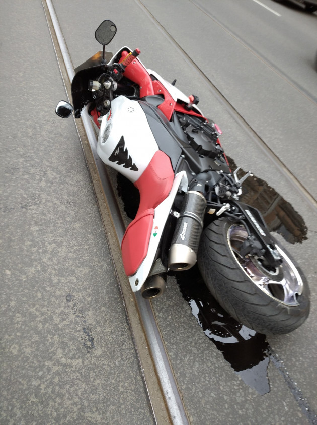 Дтп с мото на Садовой ул., д.28-30. Мотоциклист тяжелый. Апаликов Михаил Михайлович 29.06.1993. Двигался в сторону центра. Предварительно - не пропустила машина, выезжающая с Банковского пер. налево. Скорая на месте.