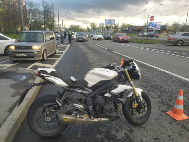 Дтп с мото у м. Озерки, пр.Энгельса. Мотоциклист в скорой. Просьба проконтролировать ситуацию и помочь с эвакуацией мотоцикла.