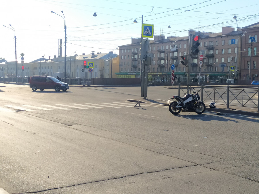 Дтп с мото примерно в 19:30 на Набережной Обводного канала, 116а. Мотоциклист жив, цел, помощь не нужна.