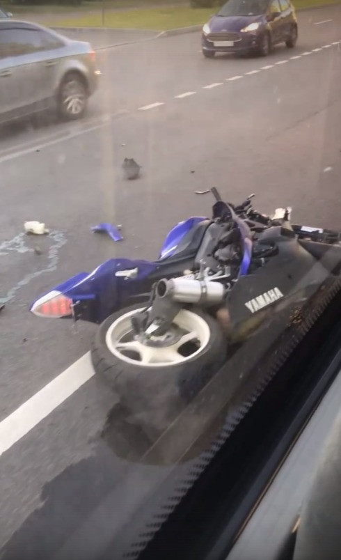Дтп с мото на ул. Есенина, д.2 к.3, перед перекрестком с пр. Тореза. Мотоциклист жив.