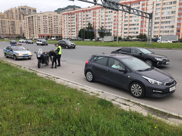 Дтп с мото на Богатырском пр., д.42. КИА въехала в зад мото F800ST. Все живы и здоровы, дпс на месте. Помощь не нужна.