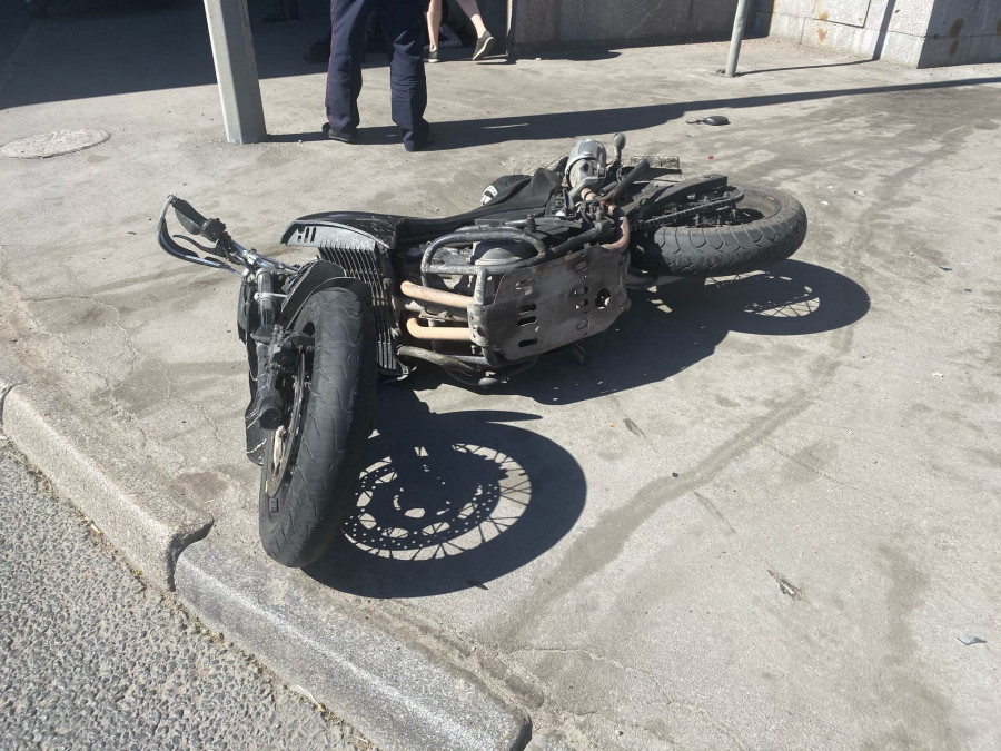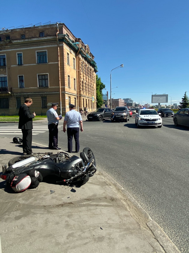 Дтп с мото на Выборгской набережной, д.59, под Кантемировским мостом. Мотоциклистка Юлиана, в скорой осматривают, чувствует себя нормально. Ехала в крайнем правом, машина в неё перестроилась.