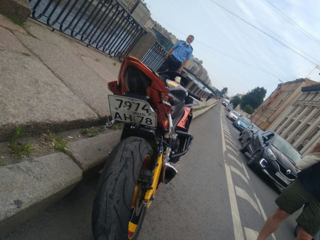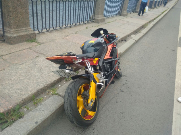 Дтп с мото на наб. Фонтанки, д. 134, не справился с управлением вылетел на тротуар. Мото Ямаха YZF-R6S, 7974АН78.