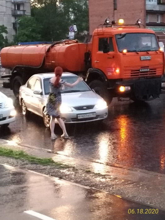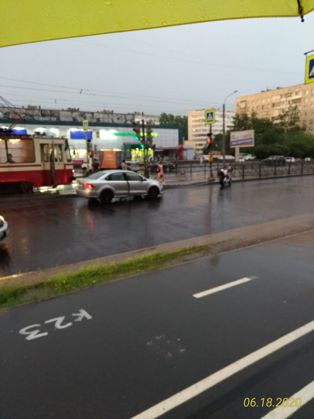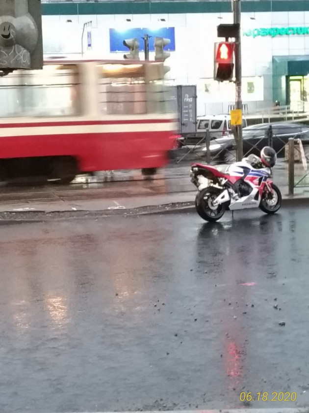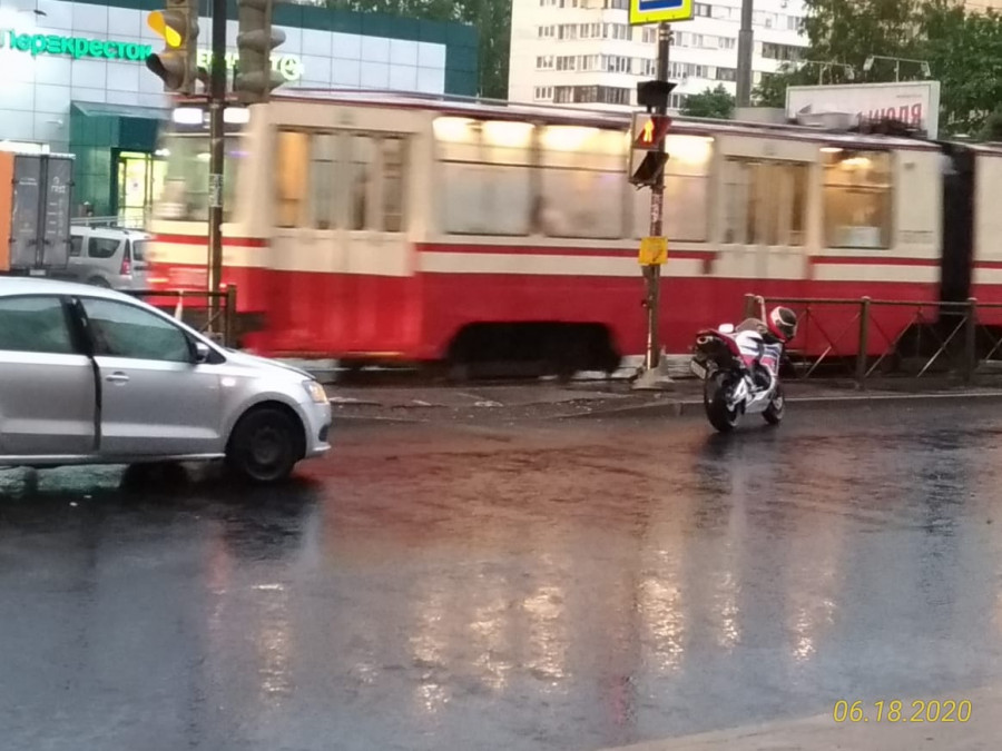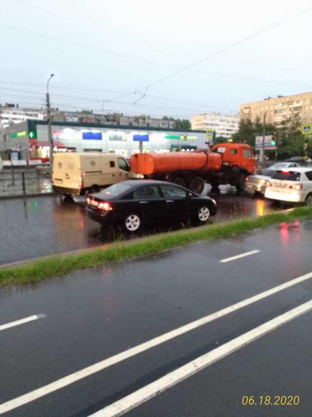 Дтп с мото на пр. Луначарского, д.21, к.1. Водовоз, 2 машины и мотоцикл. Мотоциклист в порядке.