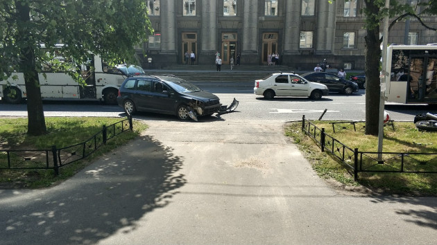 Дтп с мото на ул.Типанова, д.3. Мотоциклист в сознании (травма ноги). Мот 3443АМ78.