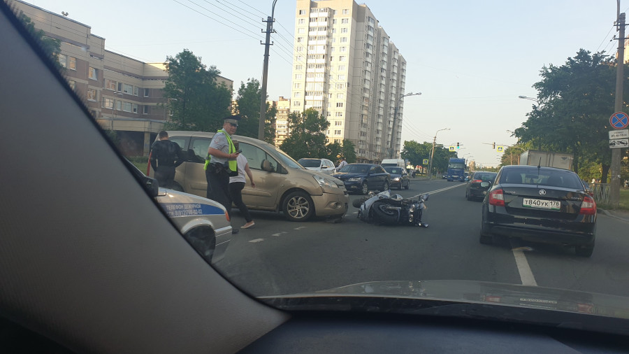 Дтп с мото на ул. Олеко Дундича, д.36. Красное авто не поделило дорогу с серебристым мотом. Все целы, помощь не нужна.