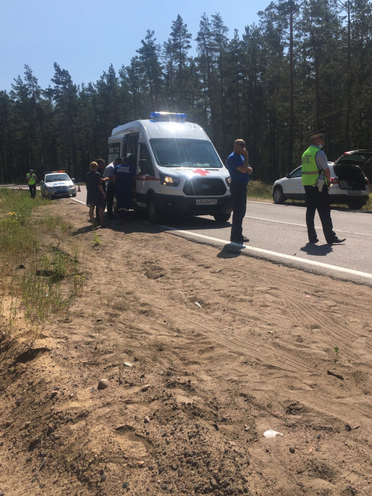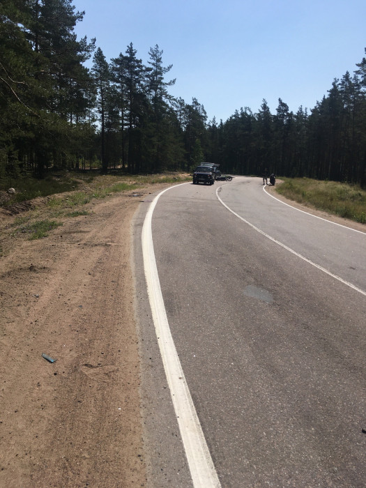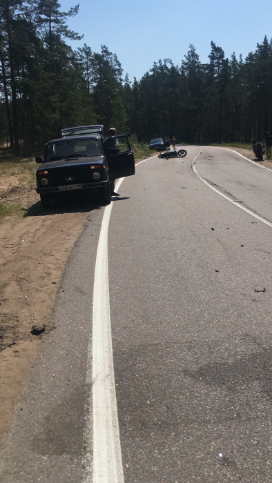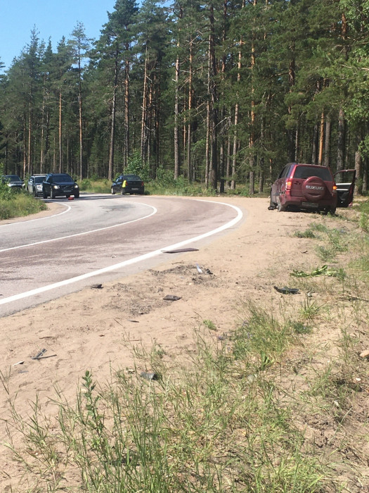 Дтп с мото примерно в 12:00 на трассе от Зеленогорска в строну Приморска. 2 машины и мотоцикл, на повороте мотоциклист вылетел на скорости уже на боку почти на встречку в первую машину, потом во вторую. Поломался: рёбра, нога, голова. В первой машине у мужчины лет 50 просто испуг и нервы, во второй парень лет 20 кровь была у уха, на шеи порезы от стекла зеркала. Мот без страховки.