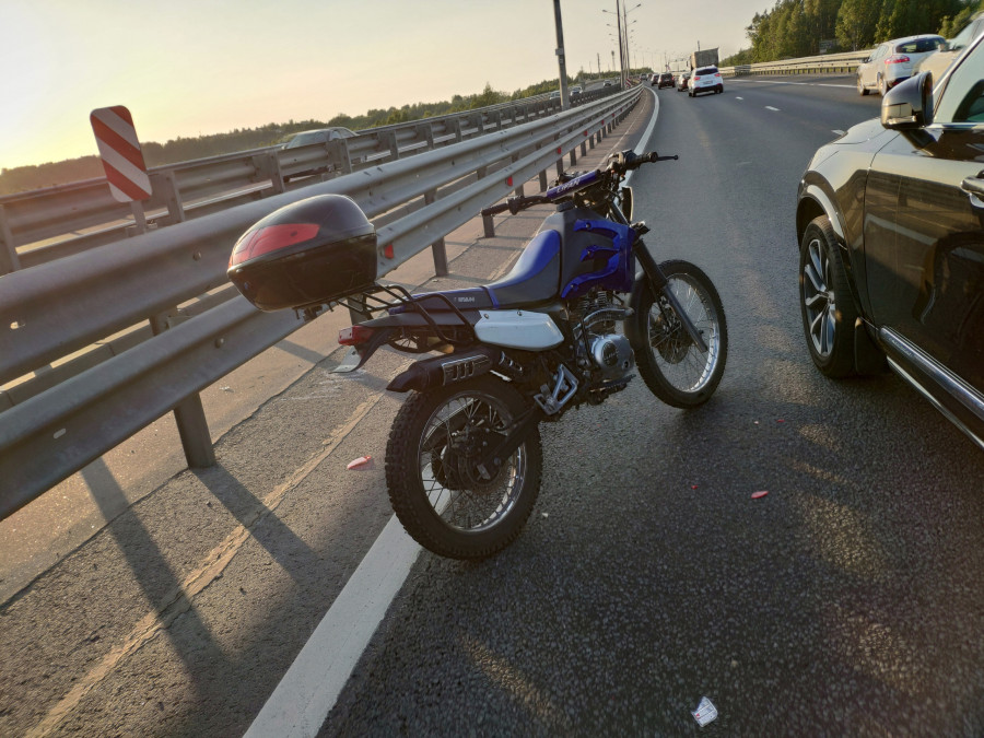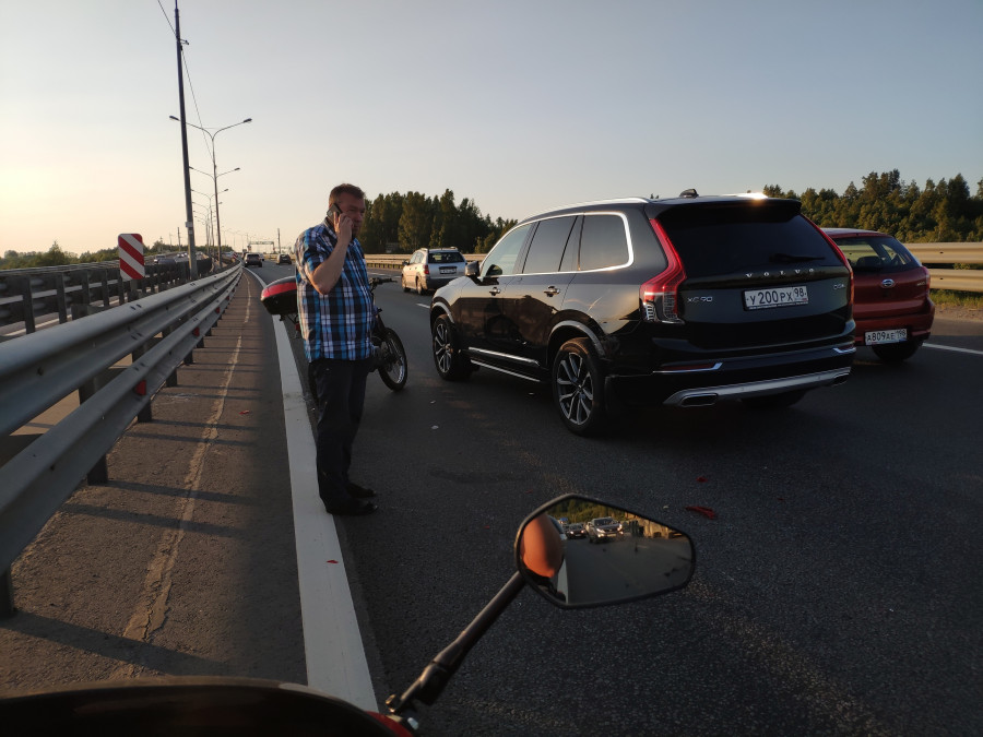 Дтп с мото на Новоприозерском ш.. Мотоциклист врезался в Вольво и убежал.