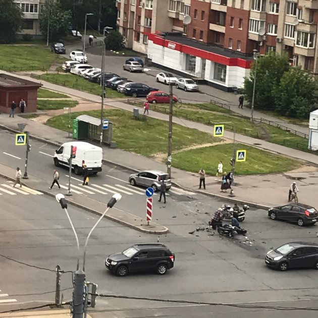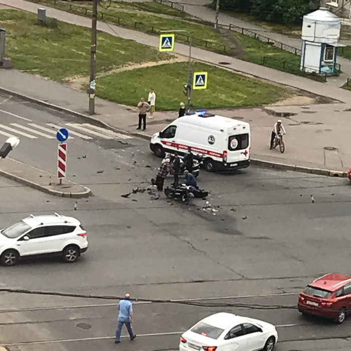 Дтп с мото перекрестке Товарищеского пр. и ул. Коллонтай. Мотоциклист в машине скорой помощи.