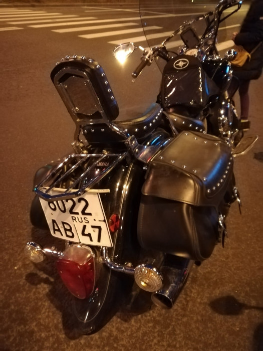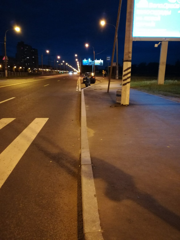 Дтп с мото примерно в 00:30 на перекрестке Петергофского ш. и ул.Партизана Германа. Автомобиль подрезал мотоцикл. Все живы, но есть повреждения мотоцикла. Автомобиль сначала скрылся, но его вернули к месту ДТП.