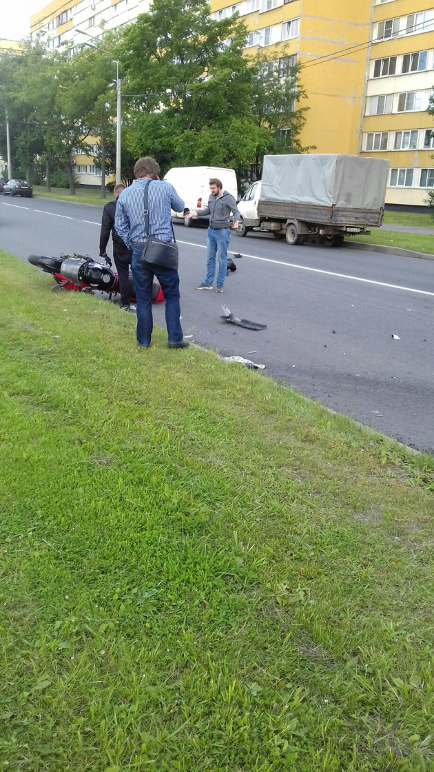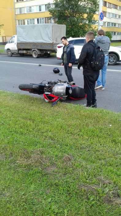 Дтп с мото на перекрестке дублера Петергофского ш. и пр.Кузнецова. Мотоциклист жив.