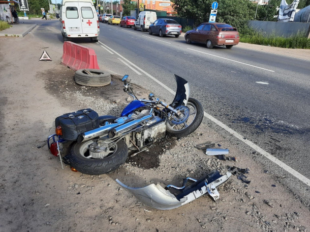 Дтп с мото в 7:32 на Шоссейной ул. в Янино-1. Мотоциклист жив, доставлен в больницу.