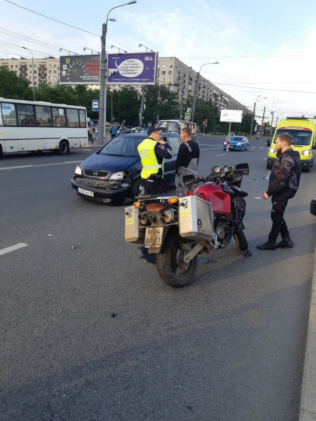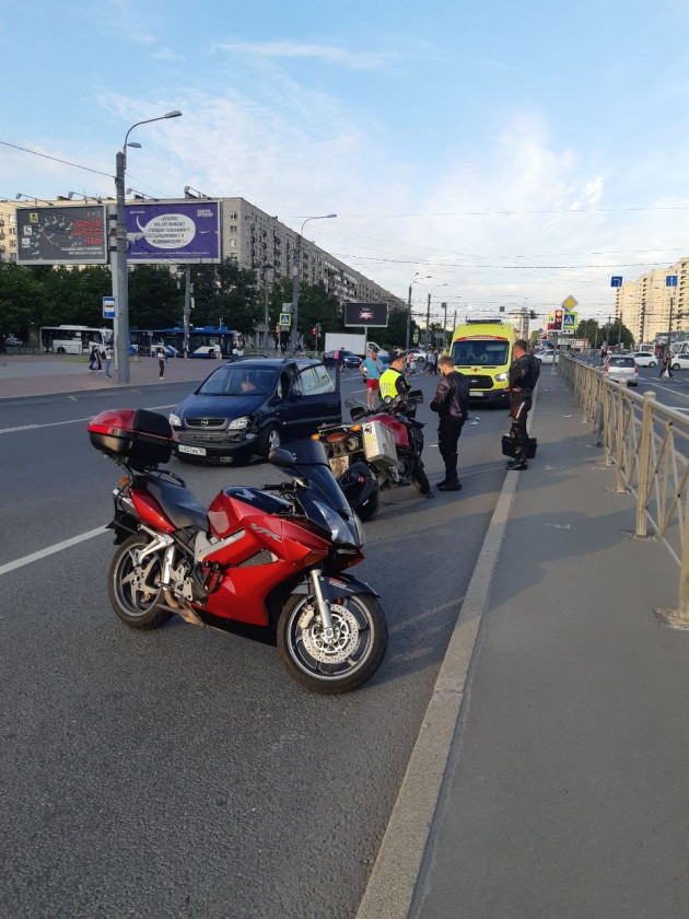 Дтп с мото на перекрестке ул. Типанова и пр. Космонавтов. Мотоциклист в порядке. Пассажирка в машине скорой помощи.
