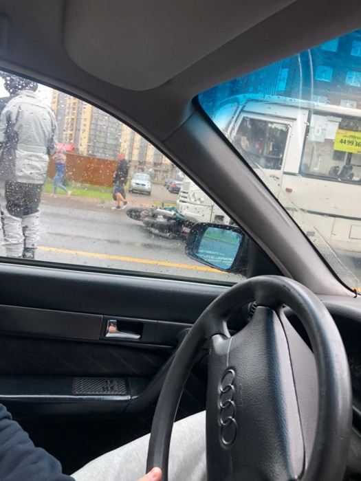 Дтп с мото на Советском пр., перед поворотом на Заводскую ул.. Мотоциклист живой.