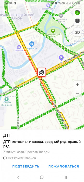 Дтп с мото на Индустриальном пр., д.40к.1. Мотоцикл и шкода. Информация с Яндекс карт.