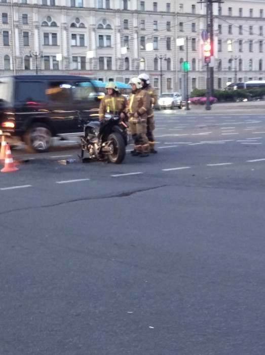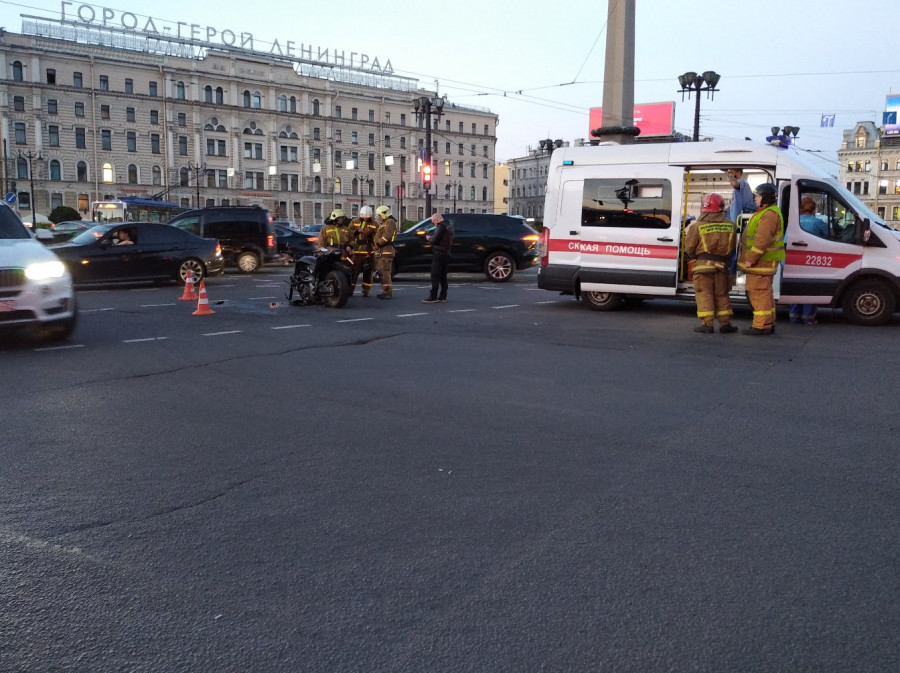 Дтп с мото на пл. Восстания (поворот с Невского пр. на Лиговский пр.). Мотоциклист (средний) в скорой. На месте девушка.