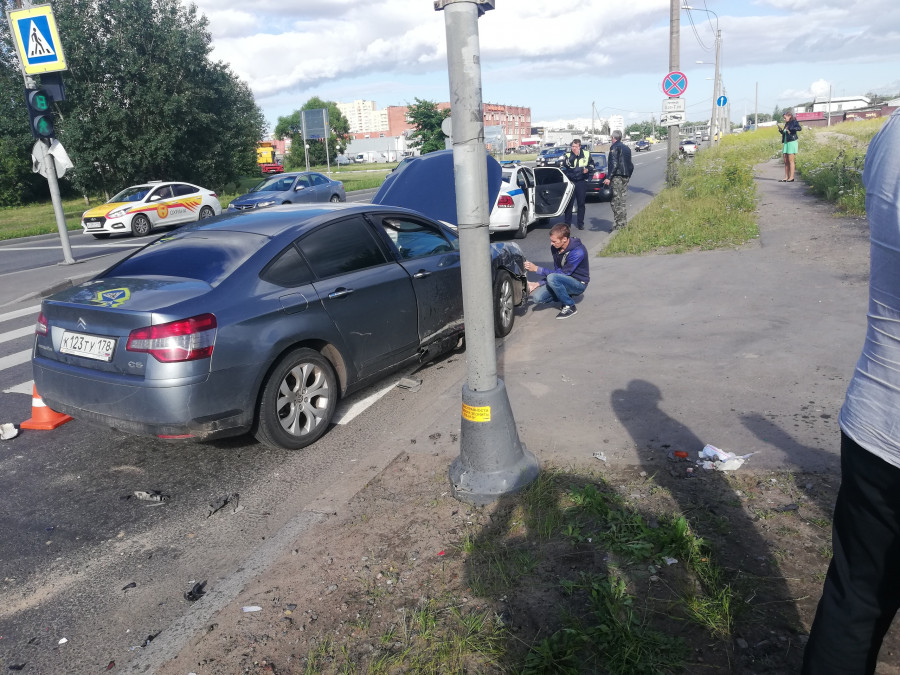 Дтп с мото перекрестке пр. Народного Ополчения и пр. Маршала Жукова. Ситроен не пропустил мотоциклиста. Мотоциклист жив, уехал в травму.