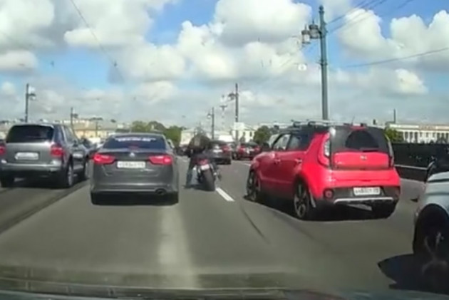 Дтп с мото примерно в 13:00 на Литейном мосту. Мотоциклист, увидев что Киа Соул повернула колесо влево, нажал на тормоз, во избежании ДТП, и завалился вместе с мотоциклом.