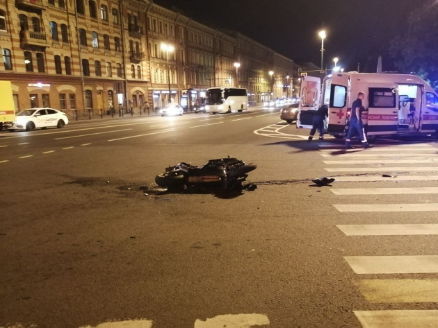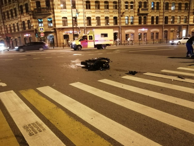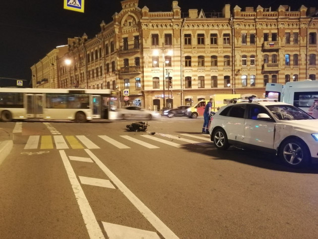 Дтп с мото на перекрестке наб. реки Фонтанки и Московского пр.. Мотоциклистка в скорой.