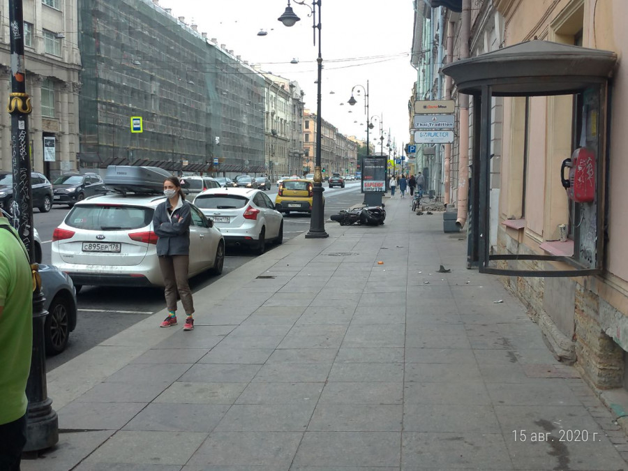 Дтп с мото на перекрестке Литейного пр. и ул. Жуковского. Мотоциклист (травма ноги) в скорой. Мот Kawasaki номер 7095АН78, заберёт друг.