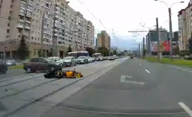 Дтп с мото примерно в 18:15 на Наличной ул., д.55. Мотоциклист жив, повреждена нога.