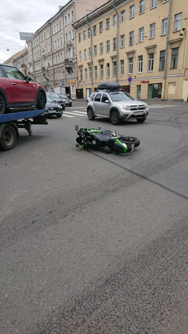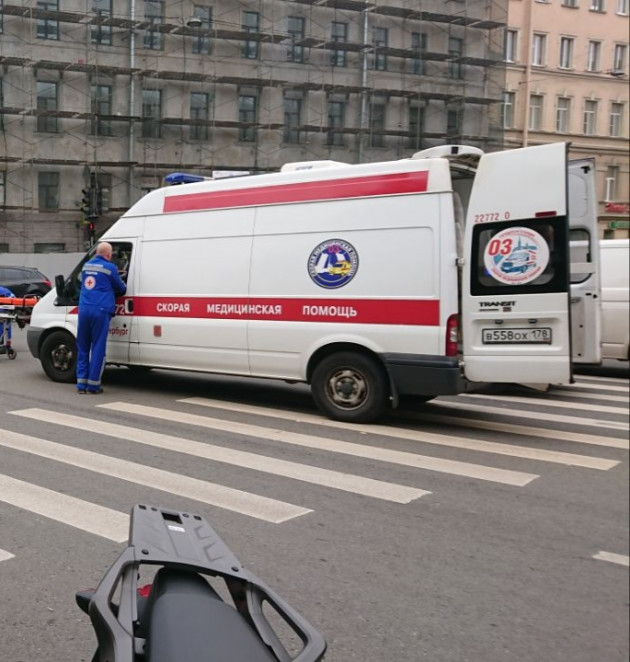 Дтп с мото на перекрестке Старо-Петергофского пр. и Рижского пр.. Мотоциклист (в сознании, перелом ноги) в скорой, увезли в Мариинскую больницу. Номер мото 5682АЕ47. ДПС на месте.
