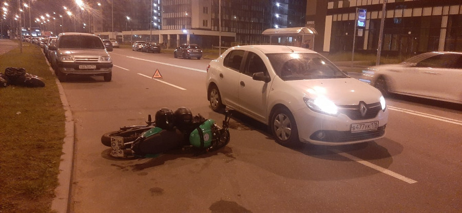 Дтп с мото на Пражской ул., д. 6 (Кудрово). Рено не пропустил мотоциклиста. Номер мото 3849АО25.