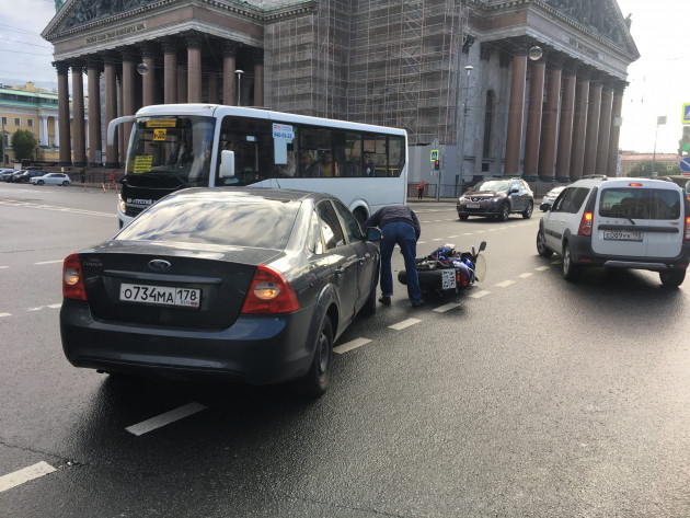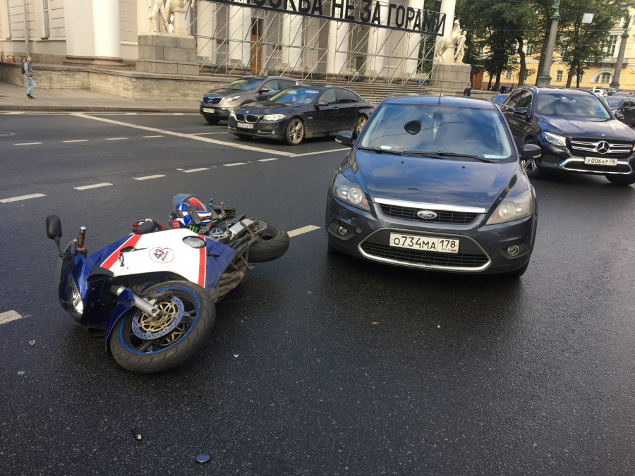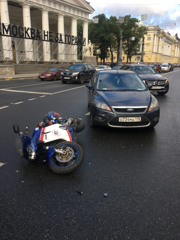 Дтп с мото на перекрестке Адмиралтейского пр. и ул. Якубовича. Мотоциклист жив, цел, ушибы. Водитель а/м утверждает, что ехал на зеленый. Очень нужны записи с регистратора и свидетели, если чьи-то знакомые оказались рядом.