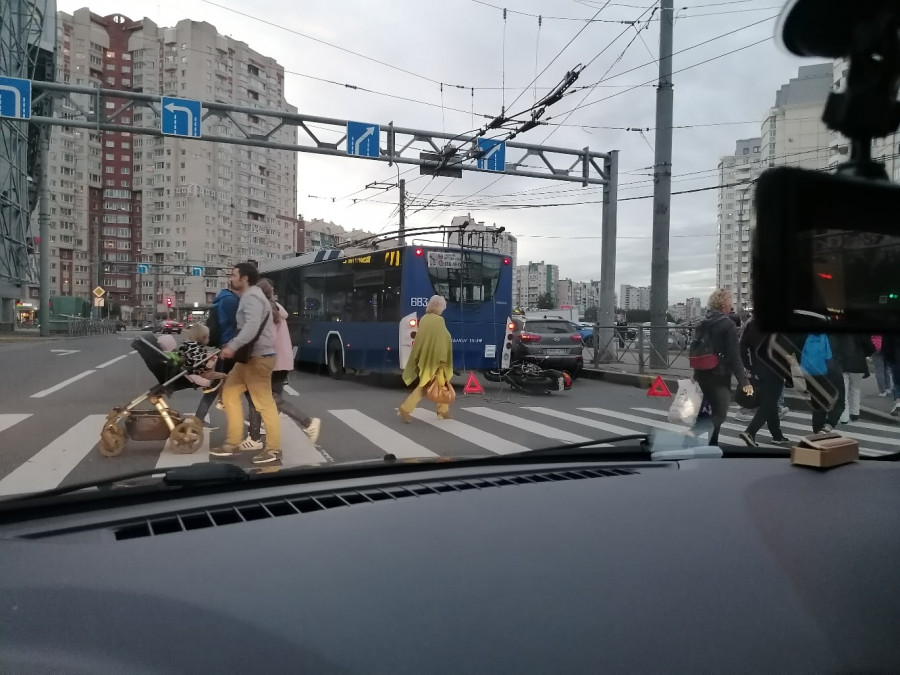 Дтп с мото на Комендантской площади. Мото и троллейбус. О состоянии мотоциклиста информации нет.