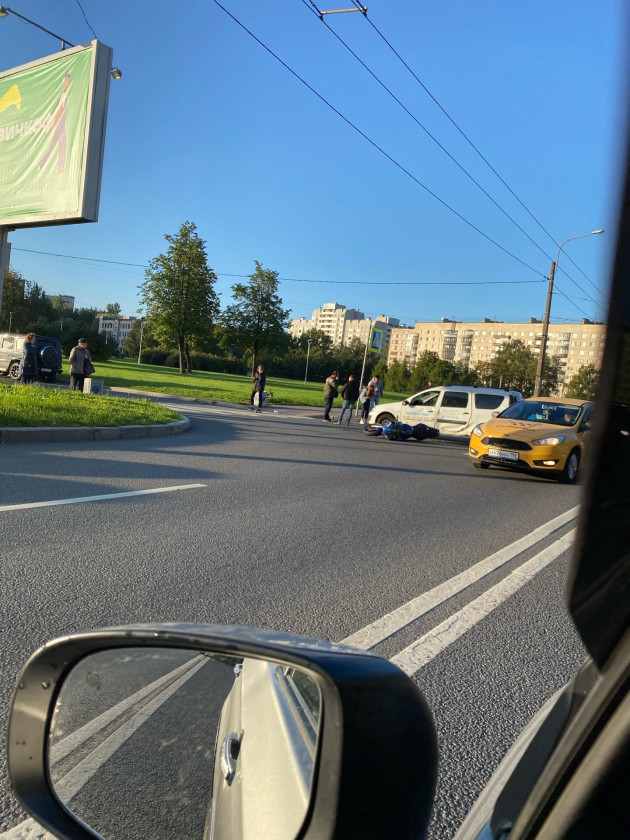 Дтп с мото на ул.Белы Куна, д.2к1, в сторону Бухарестской ул.. О состоянии мотоциклиста информации нет.