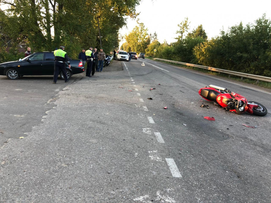 Дтп с мото на перекрестке ул. Гатчинской и ул. Евгеньевской, посёлок Тайцы, Гатчинский район, лен.обл.. На месте ДПС.