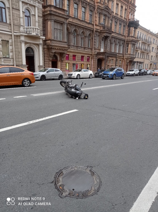 Дтп с мото на 9-ой линии В.О, д.20. Номер мото 0104АЕ47. Лексус разворачивался на 9-ой линии не пропустив мотоцикл, мотоциклист отормаживаясь поймал юз заднего колеса. Касания с авто не было. Мотоциклисту мед помощь не требуется. Ждут ГИБДД.