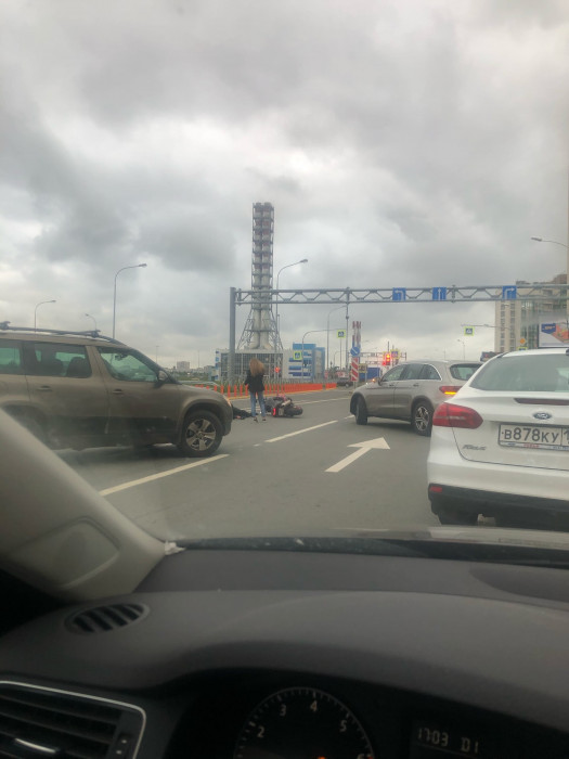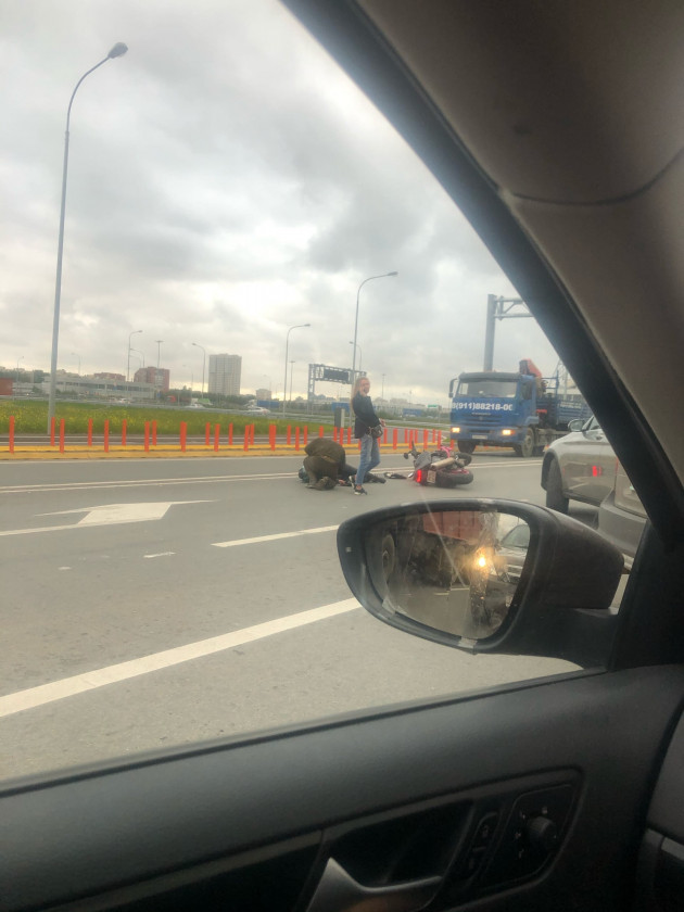 Дтп с мото на Охтинской аллее, д.18. (Мурино). О состоянии мотоциклиста информации нет.