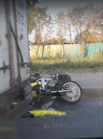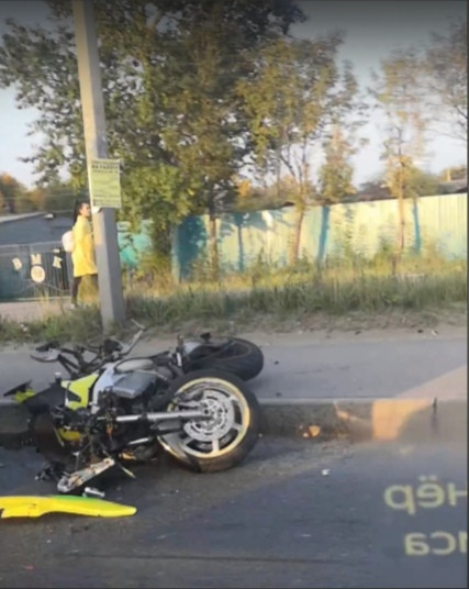 Дтп с мото на Октябрьской наб., д.112-114 (Территория Русановка). Мотоциклист цел визуально, в сознании, ходил, звонил. Моту досталось.