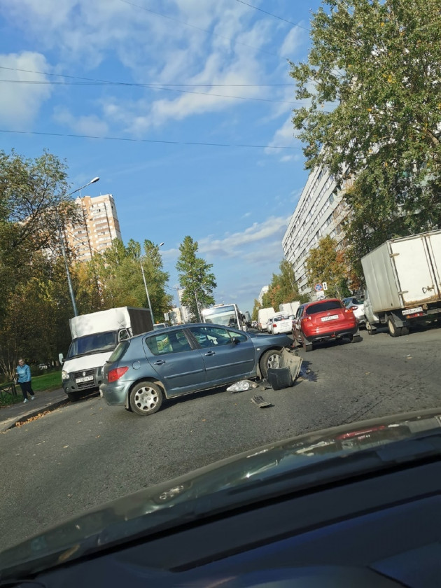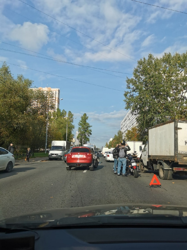 Дтп с мото на ул. Ушинского, д.5к1. Пежо со двора выезжал на ул. Ушинского и не пропустил мотоциклиста.