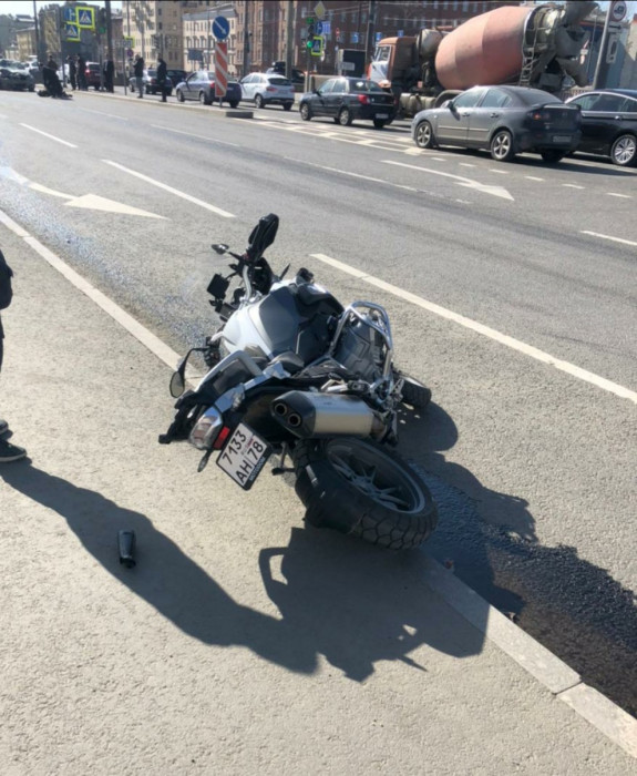 Дтп с мото на перекрестке Обводного канала и Рыбинской ул.. Номер мото 7133АН78. Мотоциклист выезжал из салона БМВ. По словам очевидцев, девушка на авто летела на красный. У мотоциклиста сломана нога, скорая увезла.