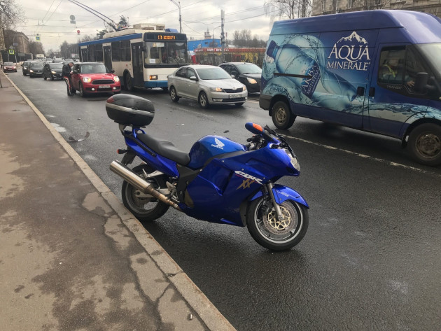 Дтп с мото в 8:30 на площади Мужества. Все живы. Поломан только дрозд. Красный купер немного поцарапали. Дама в машине не хотела фотографировать и убирать машину с проезжей части. Где знак аварийной остановки она не знает.