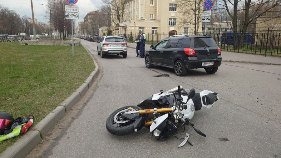 Дтп с мото 22.04.2021 примерно в 16:00 - 16:15, на Гражданском пр., д.7Б (въезд в карман), в сторону м. Академическая.