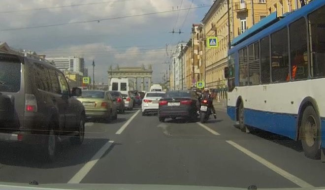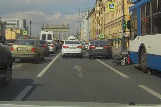 Дтп с мото примерно в 10:00 на Московском пр., д.130. Авто при перестроении бортануло мотоцикл. Все живы.