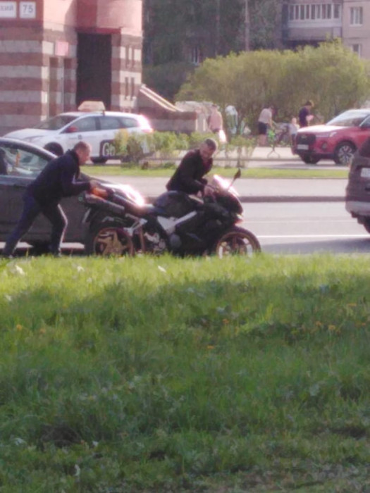 Дтп с мото на Ленинском пр. перед перекрестком с пр. Кузнецова. Предположительно мотоциклист не справился с управлением, либо его подрезали, влетел в бордюр и слетел с мотоцикла. Мотоцикл поехал дальше до перекрестка. ДПС и скорая на месте. Мотоциклист в скорой.