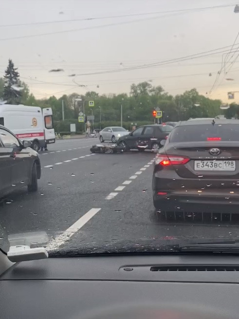 Дтп с мото на перекрестке пр.Стачек и ул.Швецова. О состоянии мотоциклиста информации нет.