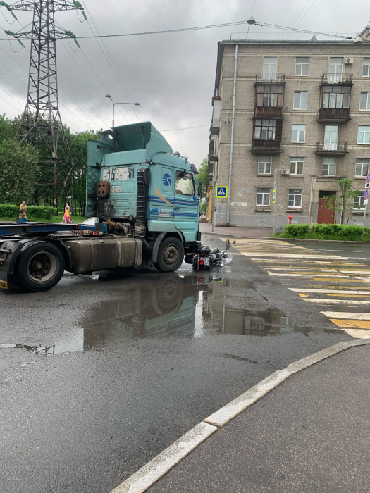 Дтп с мото в 19:10 на перекрестке ул. Зайцева и ул. Новостроек. Мотоцикл попал под поворачивающую направо Сканию. Номер мото 9537АО78. О состоянии мотоциклиста информации нет.