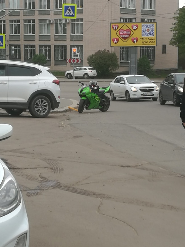 Дтп с мото в 12:11 на Ильинской ул., д.1, г.Выборг.