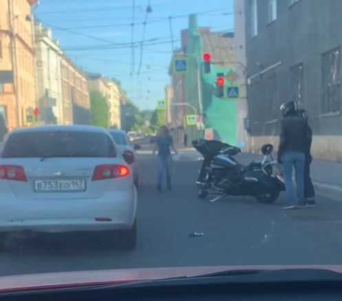 Дтп с мото примерно в 18:30 на Большом Сампсониевском пр., д.32. При опережении мотоцикла водитель авто задел его зеркалом. Мотоциклист и пассажир мото в порядке.