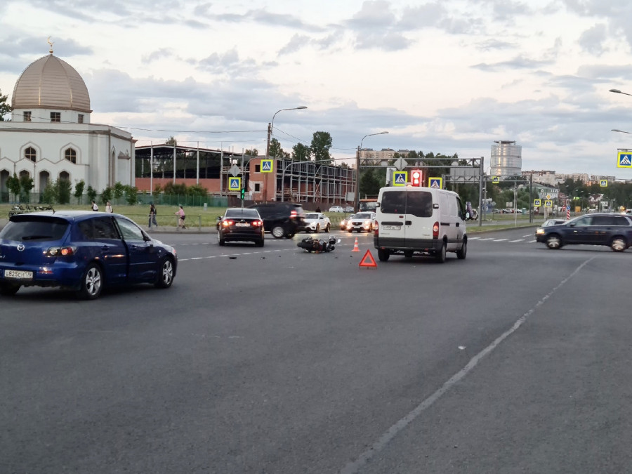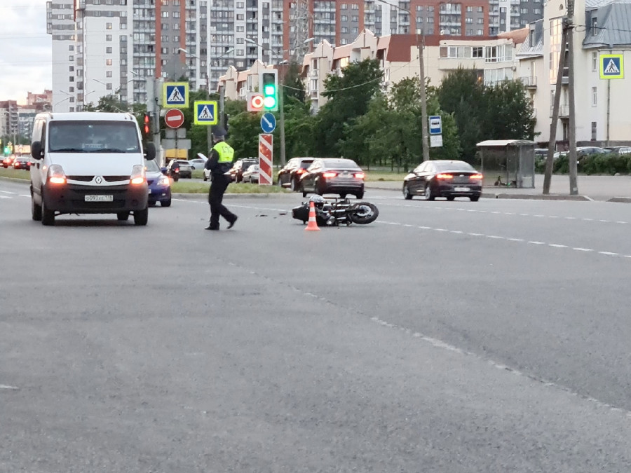 Дтп с мото на перекрестке пр.Сизова и Парашютной ул.. О состоянии мотоциклиста информации нет.